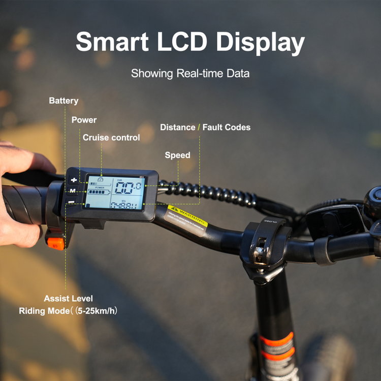 HINWEIS: Um die Geschwindigkeitsbegrenzung aufzuheben, halten Sie den Bremshebel gedrückt und drücken Sie dreimal die Taste "M".