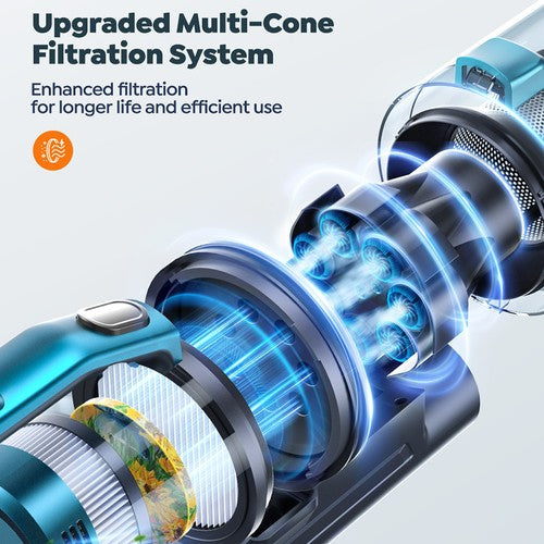 Mit einer starken Saugleistung von 38 kPa und einem 450-W-Motor entfernt der BuTure VC60 mühelos Schmutz und Ablagerungen von jeder Oberfläche und sorgt jedes Mal für eine gründliche und gründliche Reinigung.