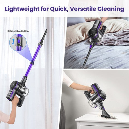 Vergessen Sie Wandhaken – dieser 2,5 kg schwere Staubsauger steht überall frei, sodass Sie ihn mühelos mitten im Einsatz pausieren können. Dank des einziehbaren Rohrs, der Fugendüse und der Staubbürste lässt er sich in Sekundenschnelle vom Stand- zum Handstaubsauger für Decken, Autoinnenräume und enge Ecken umbauen.