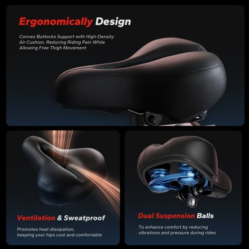 Dieses Indoor-Bike mit hochdichtem Schaumstoff und doppelter Federung sorgt für mehr Komfort beim Training. Die Pedale aus Aluminiumlegierung bieten verbesserte Flexibilität, Rutschfestigkeit und Sicherheit. Der Lenker ist ergonomisch geformt und liegt angenehm in der Hand, sodass Sie sich ungestört auf Ihr Training konzentrieren können.