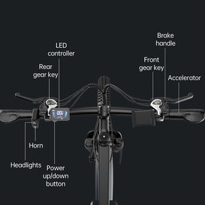 | Spezifikation | Motor: 1000 W Batterie: 48 V 21 Ah Reifengröße: 29*2,1 Zoll Höchstgeschwindigkeit: 25 km/h, 48 km/h (nach Freischaltung) Reichweite: 70-90 km (PAS-Modus) Bremse: Mechanische Scheibenbremsen Stoßdämpfer: Vorderradgabel-Stoßdämpfer Schaltung: Shimano 21-Gang Steigung: 30° Maximale Belastung: 150 kg Anzeige: LCD Beleuchtung: Scheinwerfer, Rücklicht Ladezeit: 5-7 Stunden |