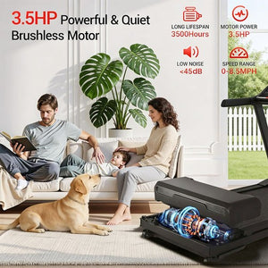 Das Laufband ist mit einem leistungsstarken und langlebigen bürstenlosen Motor ausgestattet, der eine maximale Leistung von 3,5 PS und eine Höchstgeschwindigkeit von 14 km/h bietet. Es ist für ein maximales Benutzergewicht von 180 kg geeignet und somit für Nutzer unterschiedlicher Größe geeignet. Mit einem Geräuschpegel von unter 45 Dezibel stört es weder Sie noch andere, weder zu Hause noch im Büro, sodass Sie sich ungestört auf Ihr Training konzentrieren können.