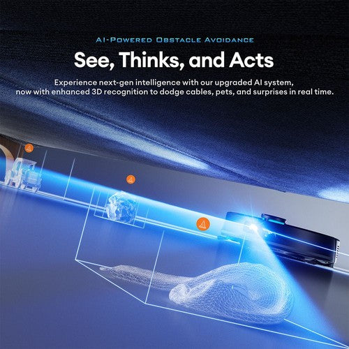Die KI der nächsten Generation mit verbesserter 3D-Erkennung erkennt und umgeht Kabel, Haustiere und unerwartete Hindernisse in Echtzeit, minimiert Unterbrechungen und gewährleistet einen effizienten Betrieb.